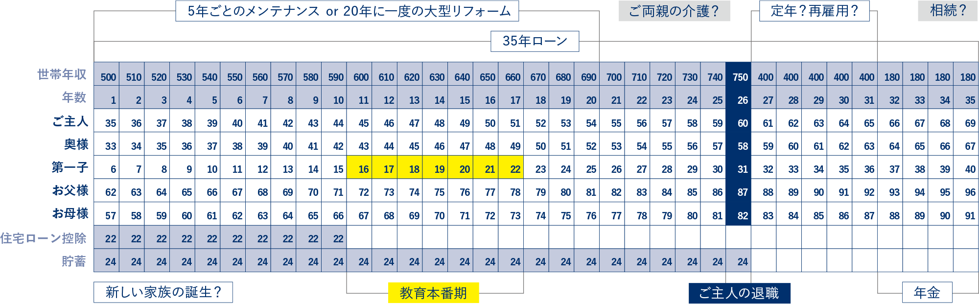 - 私は、収入合算(ペアローン)で住宅ローンを組むプランニングに違和感を覚えていました。というのは、7年後には専業主婦に戻りたいと思っていたから。でも、「未来カレンダー」によると教育費が最も大きくなるのは13年後。それまで共稼ぎで繰上げ返済できるので、7年後に私が仕事を辞めても主人の収入で月々の支払いができるとわかって安心できました。実は他社でも同じ提案を受けたのですが、なぜか、あまりイメージが湧かなかったのです。