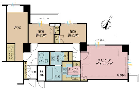 3LDK、専有面積84.46m2